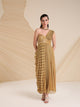 Chloe: Here’s the Chloe set; power dressing for the contemporary and charismatic Indian women through pre-draped concept saree, hand-embellished velvet belt, and flawless adorned blouse with long puffed sleeves.