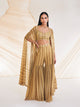 Our Vivien cape set offers feminine flowy skirt, and blouse adorned with tassels. The silky organza cape with dainty embellishments is another opulent factor of the set.
